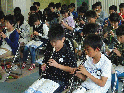 1・2組合同でリコーダーの練習をしていました。6年生全員で合奏すると、迫力があります。まだ曲を演奏するところまではいっていないようですが、練習を重ねる中で迫力ある合奏が聞こえてきそうです。