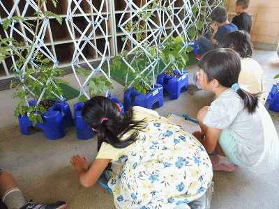 生活科の授業(2年生) 公開日 2018/06/01 更新日 2018/06/01 2年生の部屋 種をまいて毎日水をあげている植物が、ずいぶん大きくなり実をつけ始めています。なす、きゅうり、ミニトマト、おくら等、それぞれが育てている野菜の様子を、一生懸命に記録していました。