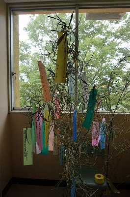 もうすぐ七夕です! 公開日 2018/07/03 更新日 2018/07/03 6年生の部屋 南棟3階の廊下に、七夕飾りが置いてありました。6年生の子どもたちが、短冊に願い事を書いて飾ったようです。 「みんなの願い事がかないますよ〜に!」