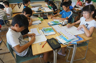 そろそろ1学期のまとめの学習をする時期です。算数の計算問題に取り組む子、それが終わって漢字ドリルに取り組む子などがいました。グループのところどころで、分からないところを友達に聞いている光景を見かけました。教える方も、教えられる方も、理解が深まることと思います。