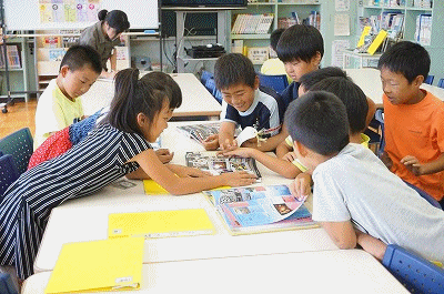 20分放課の様子 公開日 2018/07/05 更新日 2018/07/05 学校生活の部屋 今日は朝から雨で、外で遊べません。ブックランドをのぞいてみると、多くの子が本を読んでいたり、本を返しに来たりしていました。本棚にはたくさんのファイルが並んでおり、本を借りている子が多くいることが分かります。