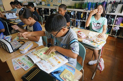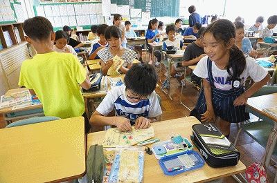 家庭科の授業(5年生) 公開日 2018/07/09 更新日 2018/07/09 5年生の部屋 なみ縫いの練習をしていました。まっすぐ縫っているつもりでも、縫い目が曲がっていたり、縫い目の大きさがそろわなかったりと、苦戦しています。