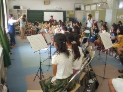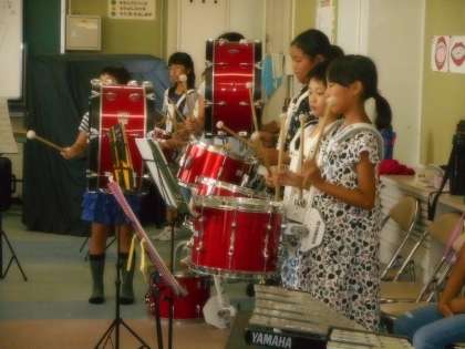 7月31日(火)、金管バンド部が美しい音色を響かせながら、一生懸命練習に取り組んでいました。夏休みが始まって10日程が経ちましたが、たくさんの児童が練習に参加していました。「真っ黒に日焼けした児童」や「髪を短く切った児童」など、生活の中心が家庭や地域になりましたが、まじめに元気よく練習している様子が伝わってきました。2学期の『運動会』や『市民まつりパレード』での活躍が楽しみです。