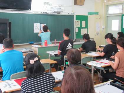 8/23(木)の午前中は、志村松琴先生をお迎えし、書写の指導についての研修を行いました。