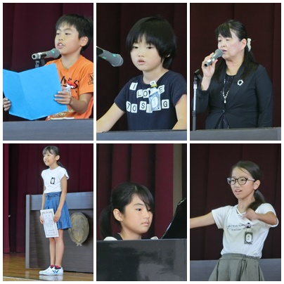 校長先生からは、「居心地のよい、安心して生活できる学級・学年・学校をみんなでつくっていきましょう!」という話がありました。2年生と5年生の代表児童は、2学期の行事や学習に対する意気込みを発表しました。最後に6年生児童の指揮と伴奏のもと、校歌を斉唱しました。