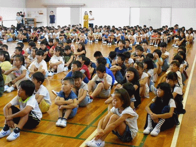 式が終わってからは、1学期に行われた水泳の市内大会で優秀な成績を収めた児童の表彰伝達がありました。どの学年の児童も姿勢がよく、集中して話を聞いていました。