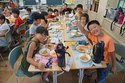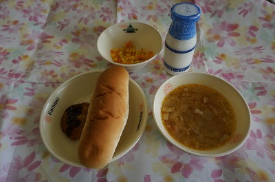 9月6日(金)の給食 公開日 2018/09/07 更新日 2018/09/07 3年生の部屋 こんだて ロールパン、マカロニスープ、れんこんサンドフライ(カレー風味)、野菜ソテー、牛乳 下の写真は3年1組の様子です。たくさんの笑顔をカメラのレンズに向けてくれましたた。