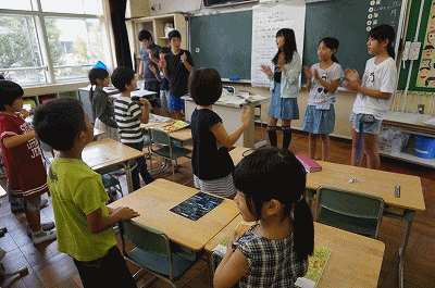 始業前の時間を使って、学級別の応援練習を行いました。6年生の児童が、グループを作って1年生から5年生の教室に出向き、応援の振り付け等を教えに行きました。学年が上がるにつれて、大きな声が出ていました。その声を伝えられないのが残念です。