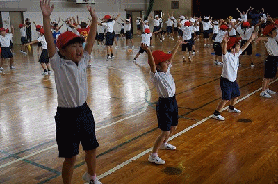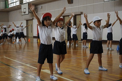 運動会に向けて(1、2年) 公開日 2018/09/11 更新日 2018/09/11 1年生の部屋 1・2年生合同で音遊の練習をしています。リズムに乗って、のりのりで踊っています。とっても可愛らしい様子です。