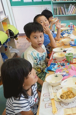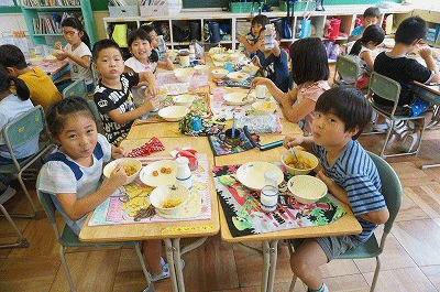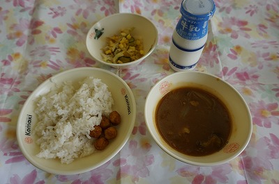9月13日(木)の給食 公開日 2018/09/13 更新日 2018/09/13 学校生活の部屋 こんだて 麦ごはん、夏野菜のカレー、鶏団子、福神サラダ、牛乳 下の写真は1年2組の様子です。大好きなカレーが出て、みんなモリモリ食べていました。