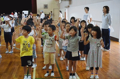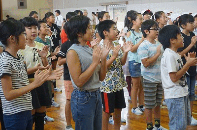 今日は体育館に全校児童が集まって応援練習をしました。学級別に応援練習をしてきた成果が出て、赤組・白組ともになかなかの完成度でした。