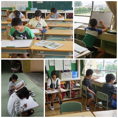 図工の時間(6年生) 公開日 2018/09/14 更新日 2018/09/14 6年生の部屋 テーマは「わたしの大切な風景」 奥行きが感じられる構図を選んで、写生をしています。 近くのものは大きくはっきりと、遠くのものは小さくぼんやりと描くと、遠近感が出ます。
