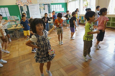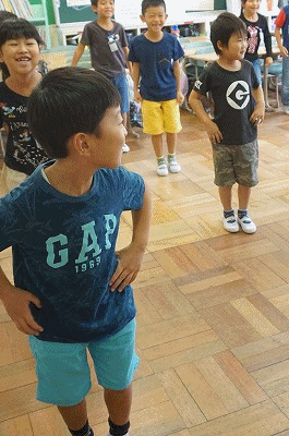 教室でも・・・ 公開日 2018/09/14 更新日 2018/09/14 1年生の部屋 たくさん練習をしています。写真は1年1組の子どもたちの様子です。これまでに何回も繰り返し踊ってきたことと思いますが、のりのりでとっても楽しそうに踊っています。表情も動きも、それはそれはかわいらしいです。