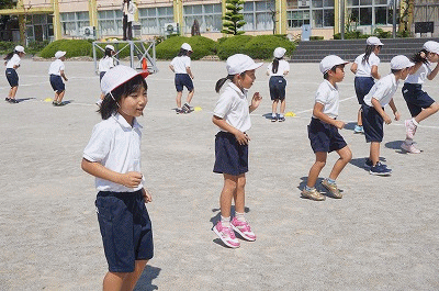 音遊の練習(2年生) 公開日 2018/09/18 更新日 2018/09/18 2年生の部屋 初めて運動場で練習しました。体育館とは広さが違うので、ちょっととまどいましたが、踊る場所もすぐに覚えました。