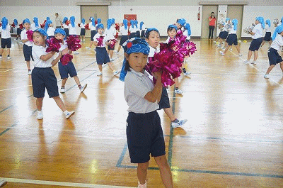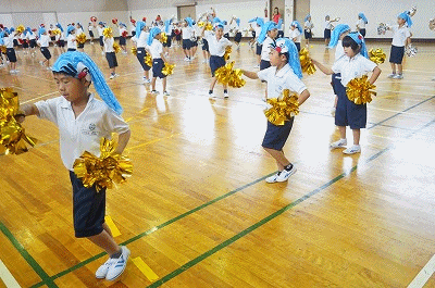2年生に比べると、1年生は踊りが早すぎたり遅すぎたりとばらつきが見られますが、かわいさと元気のよさは上回っているように思います。