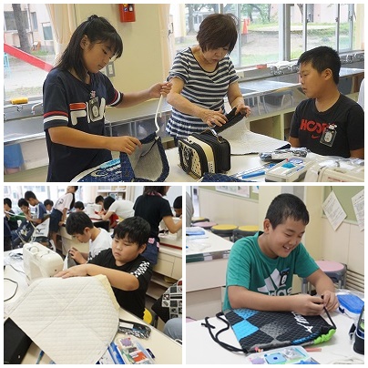 6年2組のナップサックづくりの様子です。このクラスも手際よく作業を進めていました。