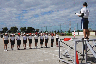 運動会全体練習2 公開日 2018/09/26 更新日 2018/09/26 学校生活の部屋 今日は練習時間を長めにとって、大玉送りの練習の後に、開閉開式の練習も行いました。実際に運動場を使って流れの確認をしました。代表の児童も安心できたことと思います。後は本番を迎えるだけですが、天候が心配です。