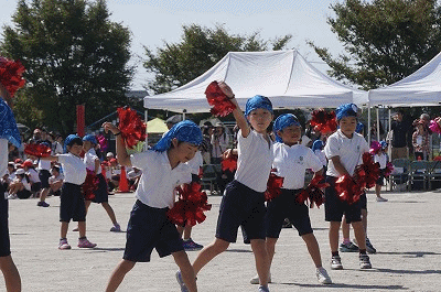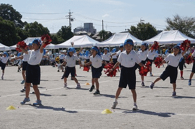 1・2年生音遊「ドラえもん DA JUMP」の様子です。