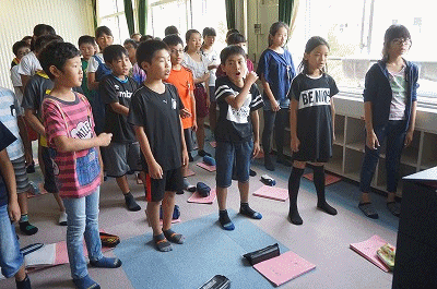 音楽の授業(5年生) 公開日 2018/10/11 更新日 2018/10/11 5年生の部屋 校長先生による合唱指導が行われています。「友達だから」という歌を歌っていました。振付がある曲のようで、子どもたちは楽しそうに歌っていました。5年生にぴったりの曲です。