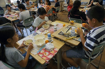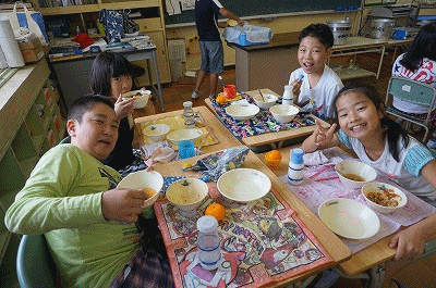 10月11日(木)の給食 公開日 2018/10/11 更新日 2018/10/11 4年生の部屋 こんだて 麦ごはん、わかめスープ、ドライカレー、冷凍ミカン、牛乳 下の写真は4年2組の様子です。今日のドライカレーはちょっぴり辛めでしたが、子どもたちはおいしそうに食べていました。