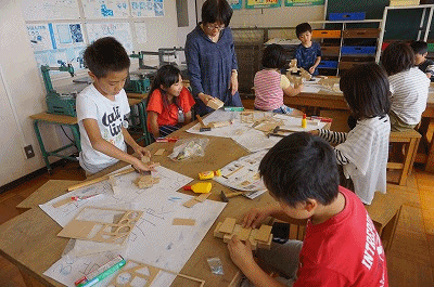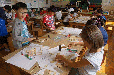 図工の授業(3年生) 公開日 2018/10/17 更新日 2018/10/17 3年生の部屋 トントンドンドン くぎ打ち名人になろう げんのうや金づちを使ってくぎを打ち、木切れを組み合わせて様々な形を造っていきます。 生き物、乗り物、家具、機械、建物など様々な形ができあがっていました。
