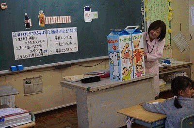 1年生のテーマは「牛乳について知ろう」です。クイズ形式で、牛乳の働きなど、いろいろなことを学んでいました。