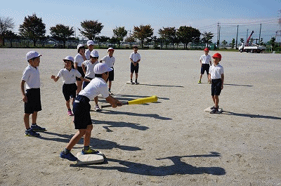 体育の授業(3年生) 公開日 2018/10/29 更新日 2018/10/29 3年生の部屋 ベースボール型のゲームをやっていました。ソフトボールを初めてやる子も多いようです。ゲームを楽しみながら、周りの子にアドバイスをもらいながらルールを覚えていきます。