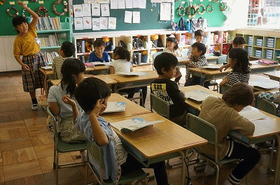 国語の授業(1年生) 公開日 2018/10/29 更新日 2018/10/29 1年生の部屋 「クジラぐも」を学習しています。1年生ですが、友達の方に体や顔を向けて発言を聞こうとしています。すばらしい!
