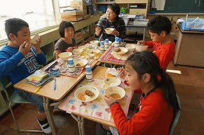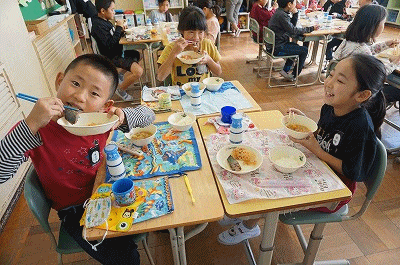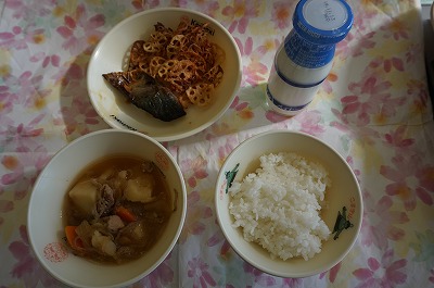 11月2日(金)の給食 公開日 2018/11/02 更新日 2018/11/02 3年生の部屋 こんだて ごはん、肉じゃが、ぶりのみりん焼き、れんこんチップス、牛乳 下の写真は4年2組の様子です。今日のメニューの一つ、れんこんチップスが子どもたちに大人気でした。おうちでも食べたいというかもしれません・・・?
