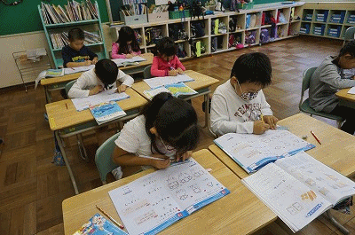 算数の授業(1年生) 公開日 2018/11/09 更新日 2018/11/09 1年生の部屋 点をつないでいろいろな形を作る学習をしています。お手本で示された、お家やヨットの形を、お手本通りに描いていきます。