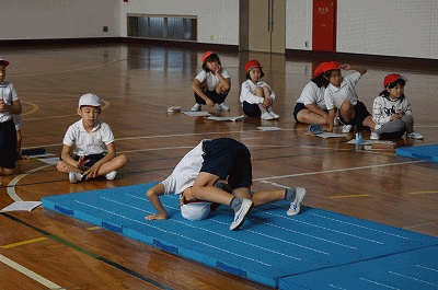 体育の授業(3年生) 公開日 2018/11/13 更新日 2018/11/13 3年生の部屋 マット運動をしています。基本となる前転や後転の練習をしていました。写真は、後転をしているところです。きれいに回転して足の裏をマットに着地できる子が意外と少なく、膝をついてしまったりする子が多くみられました。子どもたちにとって、きれいに後転することは難しいようです。