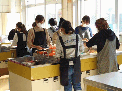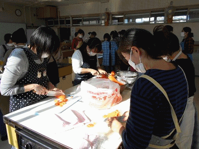 17日(土)午後1時から、北里中学校でふれあい昼食会の準備をしました。3校のPTA役員さんに集まっていただき、カレーの食材をきったりなべやかまの搬入をしたり、会場の準備をしたりしました。小木小学校は前年度のPTA役員さんにもお手伝いをしていただきました。
