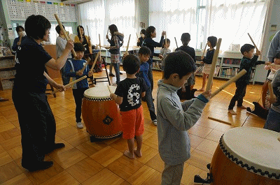 和だいこの様子です。迫力のある太鼓の音と、元気のよいかけ声が校舎中に響き渡っていました。