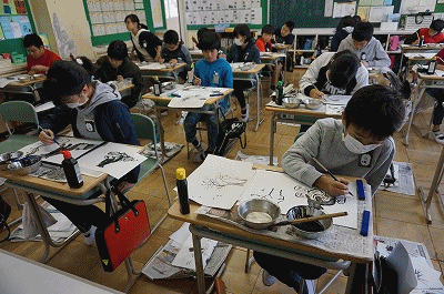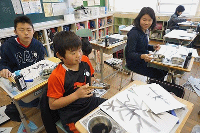 墨の濃淡を上手に使って、墨絵の世界を表現しています。とっても味のある作品ができあがっています。