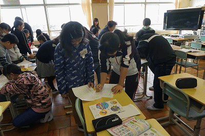 外国語活動(6年生) 公開日 2018/12/05 更新日 2018/12/05 6年生の部屋 what time do you 〜 ? 「何時に起きますか?」「朝ごはんは何時に食べますか?」等、友達に時間をたずねる学習をしていました。