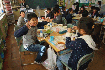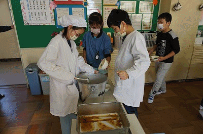 12月5日(水)の給食 公開日 2018/12/05 更新日 2018/12/05 4年生の部屋 こんだて ソフトめん、ミートソース、照り焼きハンバーグ、ひじきサラダ(マヨネーズ)、牛乳 下の写真は4年1組の給食の様子です。まだ配ぜん中かなあと思って訪ねたら、ほとんど準備が終わっていました。てきぱきと準備ができています。