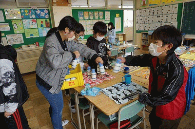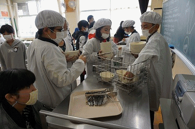 下の写真は6年1組の配膳の様子です。4時間目終了後、約10分で配膳を完了していました。すばらしい!!