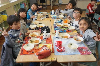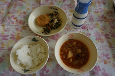 12月10日(月)の給食 公開日 2018/12/10 更新日 2018/12/10 1年生の部屋 こんだて ごはん、チリコンカーン、れんこんサンドのフライ(カレー風味)、野菜のアーモンドあえ、牛乳 下の写真は1年2組の様子です。学校生活にもすっかり慣れてきて、いろいろな表情を見せてくれるようになりました。
