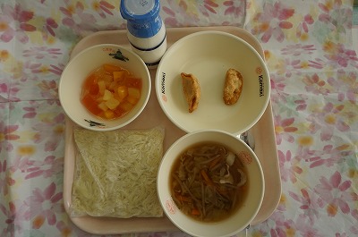 12月12日(水)の給食 公開日 2018/12/12 更新日 2018/12/12 3年生の部屋 こんだて しょうゆラーメン(中華めん)、揚げギョウザ、フルーツミックス、牛乳 下の写真は3年2組の給食準備の様子です。給食当番の児童はもちろん、先生の給食をさっと準備する子や,友達のナフキンを敷いてあげる子、机をきれいにふく子など、それぞれが自分の役割を果たしていました。