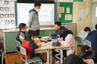 かなり流ちょうな英語を聞き取ったり、それを表現したりする練習を繰り返していました。最初は何と言っているのか聞き取れなかった子どもたちも、何回か繰り返し聞いているうちにだんだんと聞き取れるようになってきます。