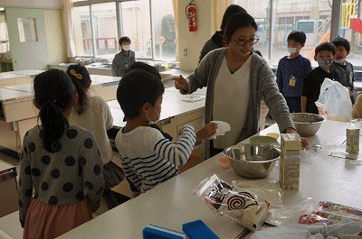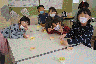 とってもおいしくできました 公開日 2018/12/19 更新日 2018/12/19 2年生の部屋 2年生の子どもたちが、自分たちが育てたさつまいもを使ってカップケーキを作りました。授業などでお世話になった先生方にもプレゼンしていました。みんなでおいしくいただきました。