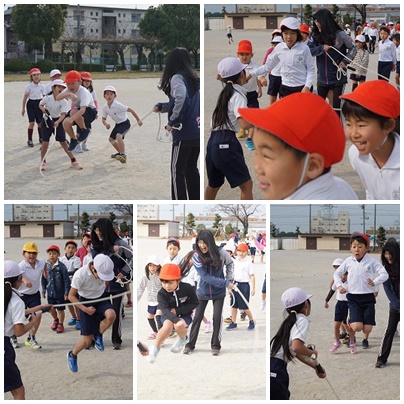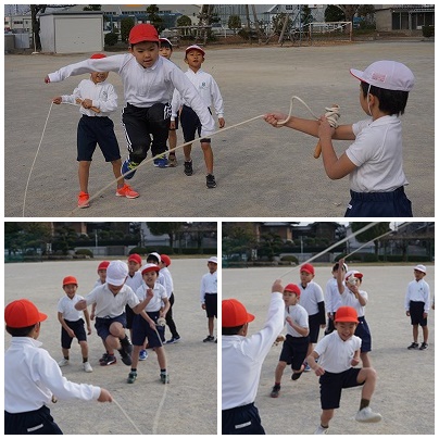 なわとび大会に向けて 公開日 2019/01/08 更新日 2019/01/08 2年生の部屋 2年生の子どもたちが体育の時間に長縄の練習をしていました。「いち、にい、さん……」とかけ声をかけながら、リズムよく跳ぼうとしています……が、なかなかうまくいきません。伸びしろはたくさんあります。練習するしかないですね。