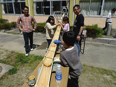 今年のイベント 公開日 2019/04/13 更新日 2019/04/13 あすなろ103の部屋 あすなろ103企画今年のイベントは「流しそうめん」です。13日(土)に試作をして、実際にそうめんを流して食べてみました。お椀やお箸も竹で作るそうです。今年のイベント開催日は6月1日(土)を予定しています。案内のチラシができたら配布しますので、ぜひご参加ください。