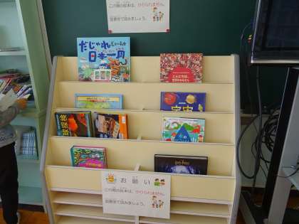 「大型絵本」や「しかけ絵本」など、普段は図書室にない絵本に、子どもたちは興味津々でした。