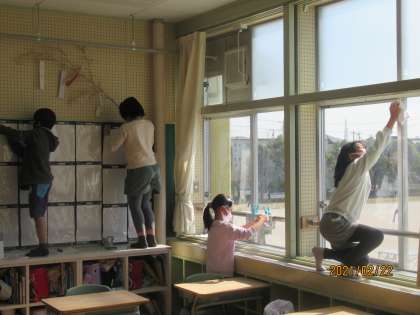 6年生が卒業に向けての奉仕作業の一環で、教室掃除のお手伝いをしてくれました。