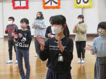 6年生を送る会(4) 公開日 2021/02/26 更新日 2021/02/26 学校生活の部屋 4年生は、6年生の思い出の曲に合わせた「ボディーパーカッション」と、「パプリカ」のダンスを披露しました。