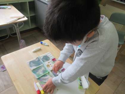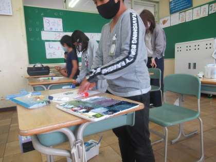 今日の図工では、絵具の「赤・黄・青」の色の三原色を混ぜ合わせて、さまざまな色を作ってあめだまを描きました。たった三色なのに、いろいろな色ができました。3年生で初めての図工だったので、失敗しないように、緊張して作業を進める児童が多かったように思います。のびのびと、筆に思いをのせて描きましょう。