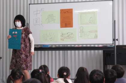 村瀬先生お話会では、二つの話を聞きました。中国のお話「こんや、妖怪がやってきた」では、おばあさんを妖怪から助けようとたまご、ぞうきん、かえる、こん棒。火ばさみ、牛のふん、ローラーが力を合わせました。「だいじょうぶ、きっと助けてくれるから」とお話の台詞を一緒に言いながら聞きました。「ひらがなどうぶつえん」では、ばらばらになったひらがなを合わせてみると動物の絵になり、どんな動物になるのか考えました。お話の世界に浸り、とっても楽しい時間を過ごすことができました。