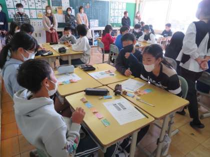 6年生総合的な学習「情報モラル」の授業の様子です。LINEを例に「楽しいコミュニケーション」について考えました。