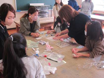 三校PTA「この指とまれ」実施(1) 公開日 2022/11/20 更新日 2022/11/20 PTAの部屋 11月20日(日)の午前中に、北里三校PTAの「この指とまれ」を実施しました。 コロナ対策のため、昨年に続き単校開催となりましたが。子どもたちの楽しむ笑顔が見られました。 写真は、「簡単防災グッズづくり」「樹脂粘土作り」「バスボム」です。